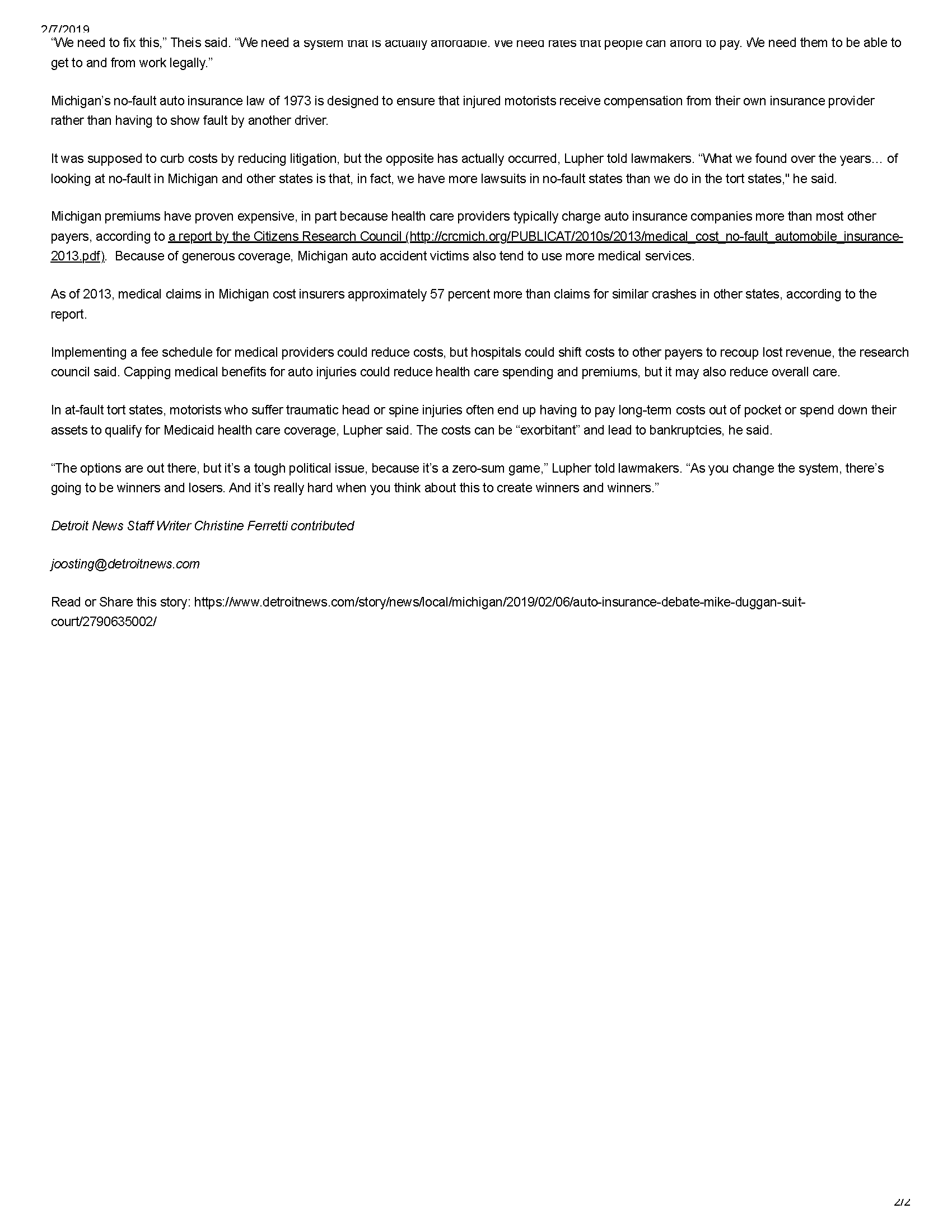 Categories Headlines Tags David FinkDetroit LawFink + Associates LawFink BressackNo-Fault Detroit News article before the Motion to Dismiss hearing: https://www.detroitnews.com/story/news/local/michigan/2019/02/06/auto-insurance-debate-mike-duggan-suit-court/2790635002/ Related postsFink Bressack attorney David Fink quoted by Law360 in Article Discussing Recent 6th Circuit Filing by “Kraken” LawyersRead moreMSNBC’s Rachel Maddow Interviews Fink Bressack Attorney David Fink About Federal Judge Linda Parker’s Order Sanctioning “Kraken” LawyersRead moreCRNA Files Lawsuit Alleging Illegal No-Poach Agreement Between Munson Healthcare and Traverse Anesthesia AssociatesRead more